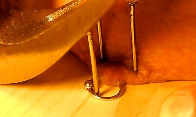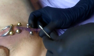 Real Clitoris piercing and thru with a needle