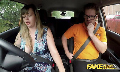 Fake Driving School Gigantic British boobs one last lesson