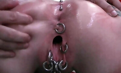 Two men knuckles in Hotkinkyjo ass at once. Prolapse & punching
