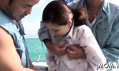 Mind blowing Asian perverts fuck one skinny Asian teenager