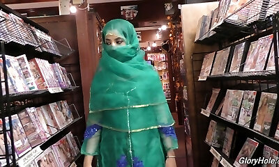 Warm Pakistani chick Nadia Ali gargles big dick in the glory hole room